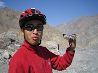 Right after the tunnel we said good-bye to the nice truck drivers. When the truck was gone, I suddenly noticed that I had left my helmet in the truck. Again! I started the long descend without any helmet. Several kilometers later my hope became true. We saw the truck and I got my helmet back. Camera, clothes and helmet! We got them all back.